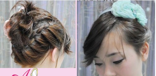 完成的效果就是这样,别看造型复杂,其实做起来很简单哦。正面可以用发箍来装饰,前看后看都很漂亮。