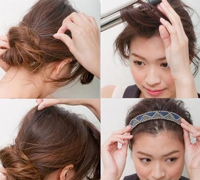 Step8:这时的韩式丸子头就已经完成了,再加上一个闪亮的发箍点缀,那一款简单的头部造型就更完美了。